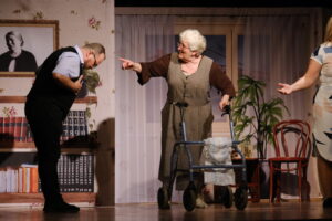 Mamma Maria ehk Proua (Õie Laksberg) mäletab, et poeg Herbertil (Janno Elmi) peaks palju rohkem juukseid peas olema. | Fotod: Raul Vinni